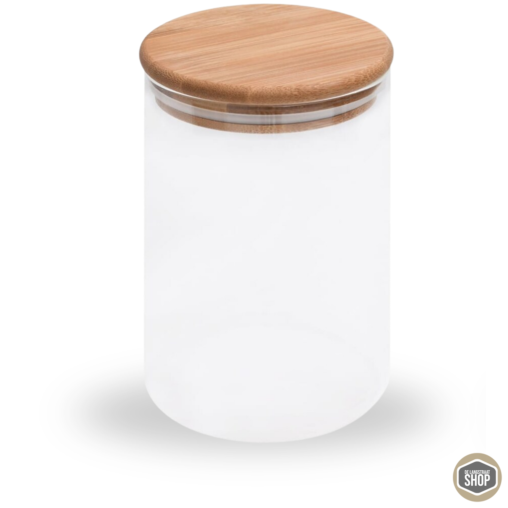 De transparante glazen pot heeft een inhoud van 800 ml en is perfect voor snoep, koekjes, chocolade of andere lekkernijen. Het natuurlijke houten deksel geeft een warme uitstraling en maakt iedere pot uniek dankzij de logo‑gravure.