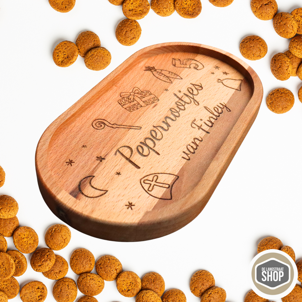 Breng de Sinterklaassfeer in huis met dit gepersonaliseerde pepernotenplankje! Leuk voor jong en oud en elk jaar opnieuw te gebruiken tijdens de Sinterklaas tijd. Het plankje is ruim genoeg voor een flinke lading pepernoten, kruidnoten, chocoladeletters of ander Sinterklaas snoepgoed. Een uniek en origineel cadeau voor het hele gezin, ideaal om te geven of zelf van te genieten.